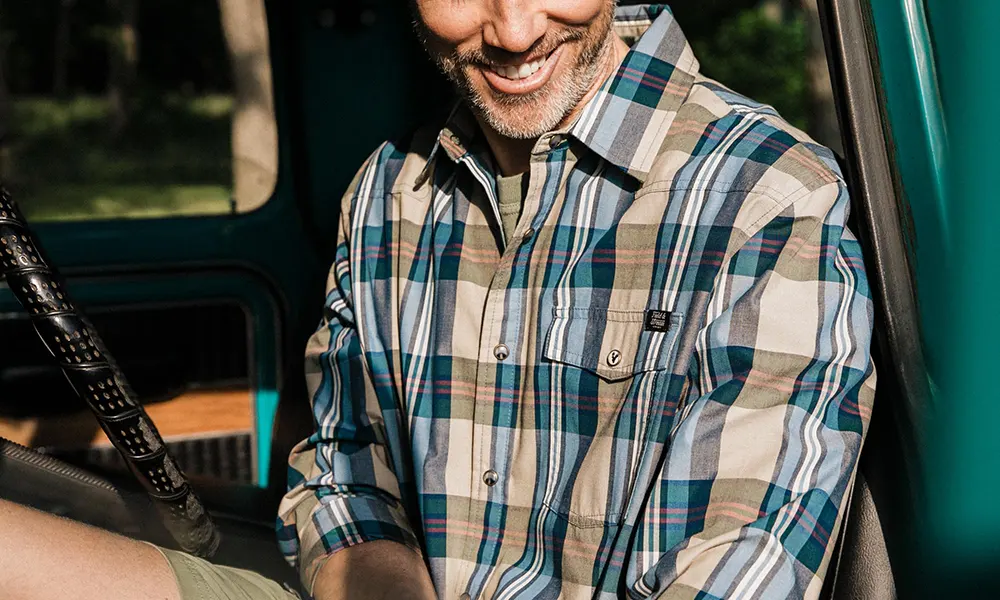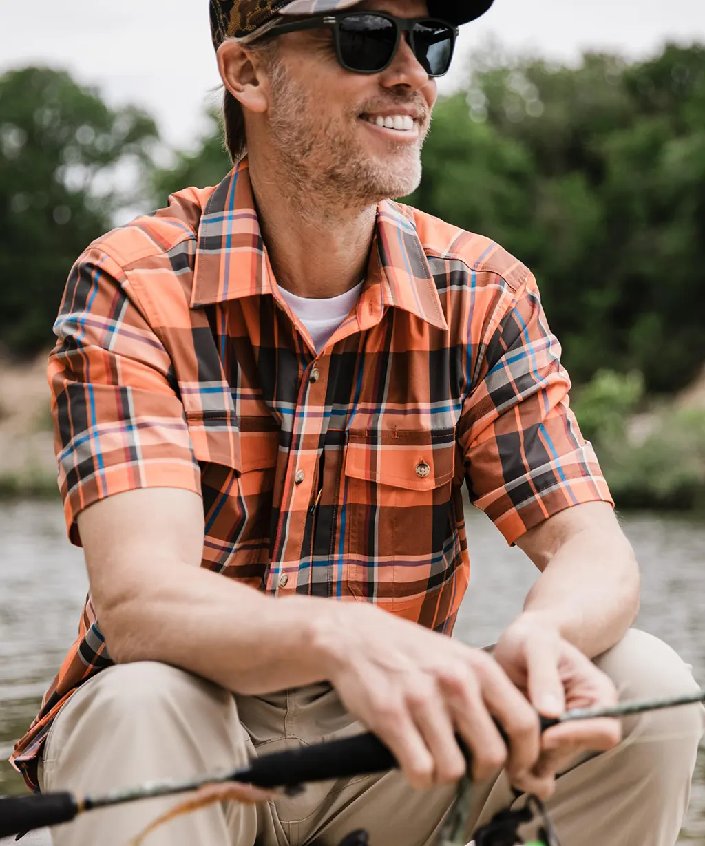 Field & Stream Men’s Line Burner Long Sleeve Nylon Performance Fishing Shirt(Sandbar Plaid)