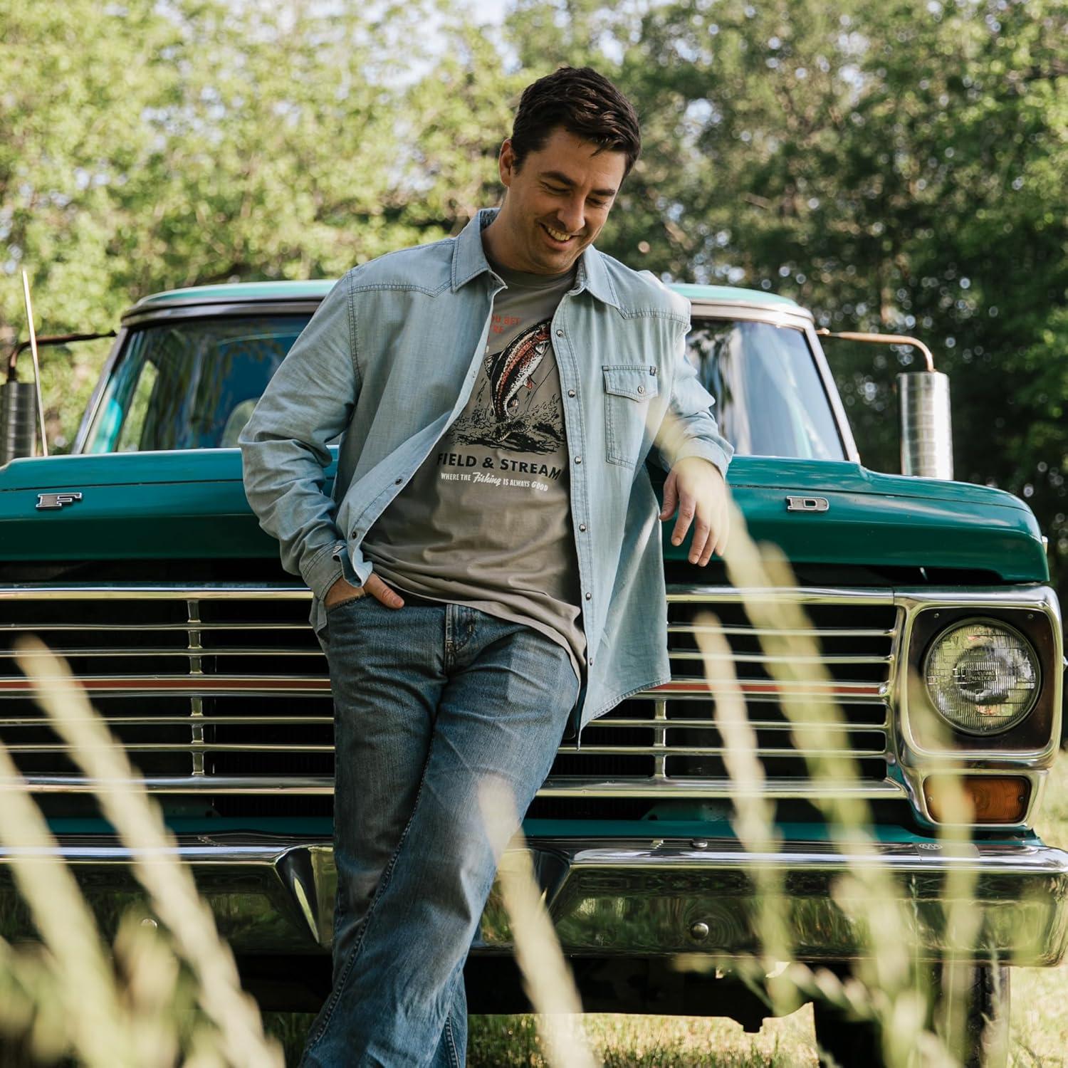 With a flattering western yoke, our woven long sleeve snap-front shirt in unique vintage patterns has the spirit of the outdoors and will take you to town looking sharp. Vintage single pocket with snap flap is branded with our Field & Stream signature, snap cuffs. A drop tail hem and flying V yoke are added for mobility and good looks.