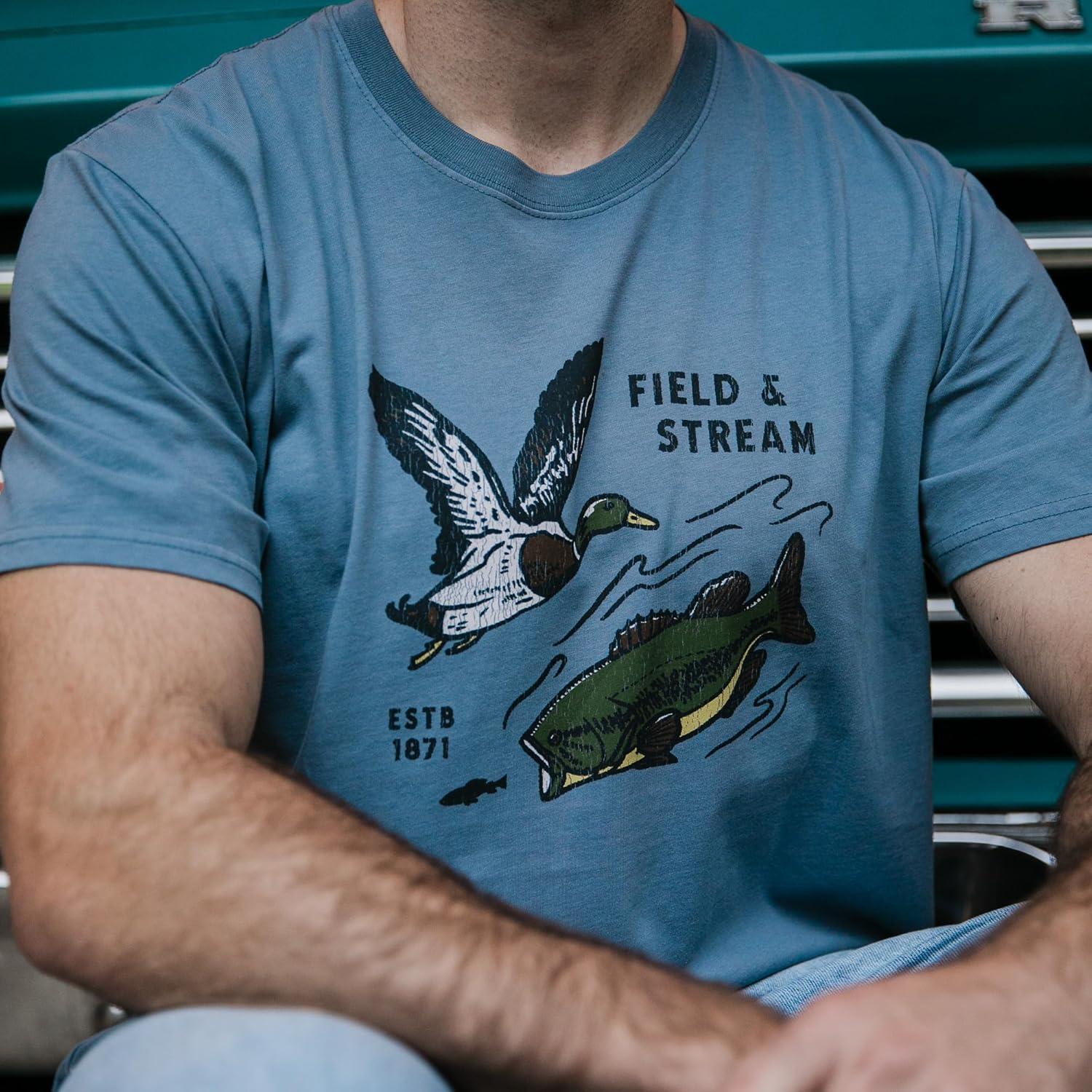 Field & Stream Men’s Midweight Short Sleeve Graphic Tee Shirt(Blue Streamer)